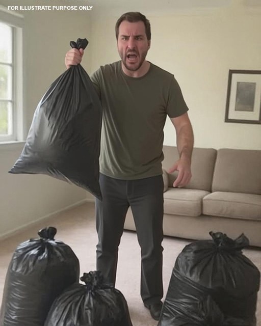 He went upstairs and came back with my clothes stuffed in garbage bags. He threw them at my feet.