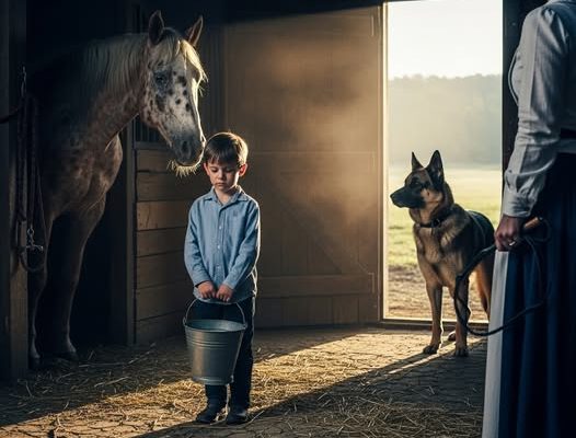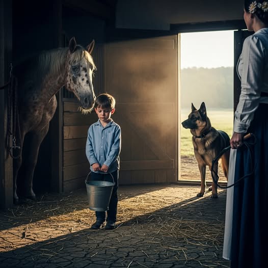 Isaac tenía cinco años. Cinco. Y ya sabía que hay madres que no aman. Y casas donde uno aprende a no respirar muy fuerte. Esa tarde, en el establo, mientras la yegua vieja golpeaba el suelo con el casco, una sombra canina observaba desde el portón con ojos oscuros, quietos, ojos que ya habían visto guerras y que pronto volverían a entrar en batalla.