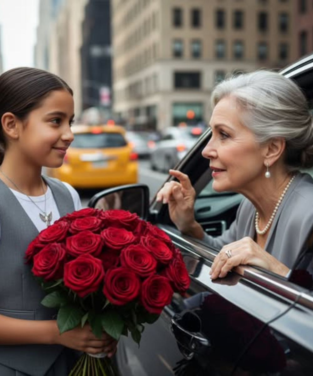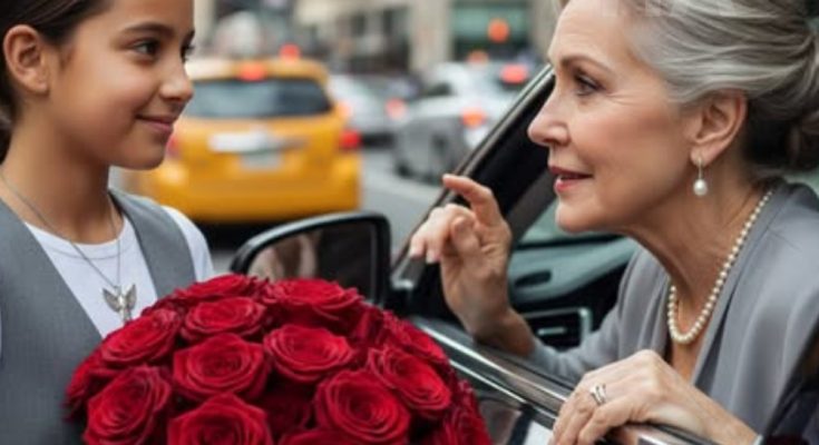 Una niña se acercó al auto con un ramo de rosas tan rojo que parecía recién arrancado del corazón de la tierra. Tendría trece años, piel morena, ojos negros como semilla de cacao, la ropa remendada pero limpia, la dignidad puesta como un moño.