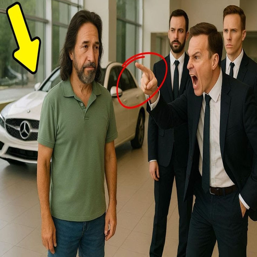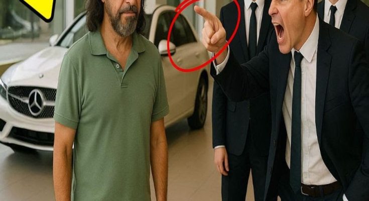 ” El hombre no se molestó, sonrió con amabilidad y asintió. “Está bien, joven. ¿Tendrán algún catálogo que pueda revisar?” El vendedor soltó un suspiro y se giró. espéreme aquí. Pero no volvió. Pasaron varios minutos. El hombre siguió mirando los autos con una calma admirable, como si estuviera en una galería de arte.