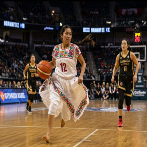 Con 7 minutos restantes en el segundo cuarto, María Lorena robó un balón en la línea de tres puntos de las canadienses y comenzó una de esas carreras que habían hecho legendario al Muquise Matí en México, pero esta vez no corrió sola. Carmen la siguió por la izquierda manteniendo perfecta sincronización, Juana por la derecha creando un triángulo de movimiento que confundió completamente a las defensoras canadienses.