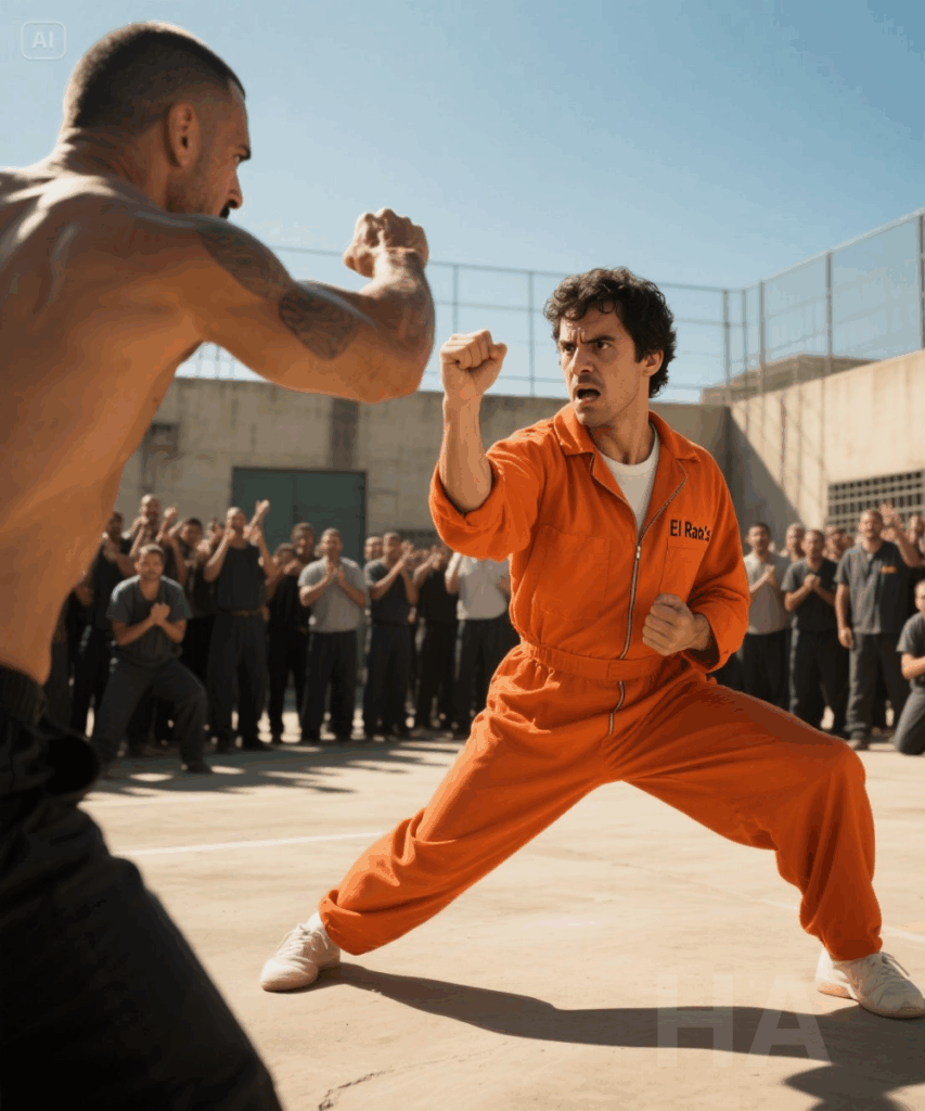 La multitud de presos ya no se burlaba. Asistía, con la boca abierta, a un espectáculo increíble. El hombre que todos creían débil y quebradizo se movía entre los ataques como un fantasma, rápido, preciso, letal. No había un solo movimiento exagerado; todo era pura eficiencia.