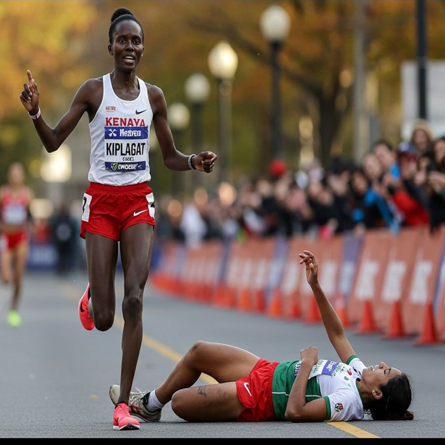 Mientras tanto, Grace Kiplagat mantenía su ritmo perfecto hacia la victoria más fácil de su carrera profesional. Corría sin presión, saboreando cada zancada de lo que sabía. Sería su consagración definitiva como la nueva reina de la maratón mundial. En su mente ya comenzaba a planear las palabras que diría en la conferencia de prensa postcarrera.