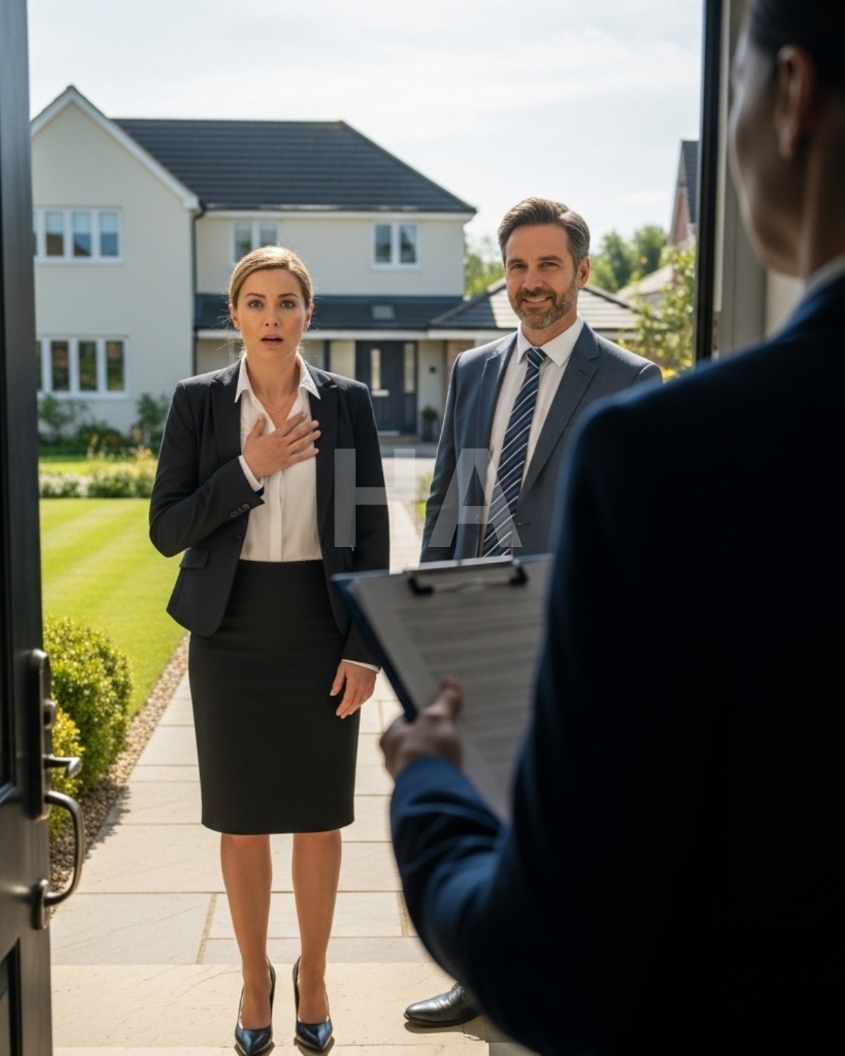 Haley entró primero, con un vestido negro que probablemente costaba más que mi coche. Holden la siguió, incómodo. El equipo de cámaras venía detrás.