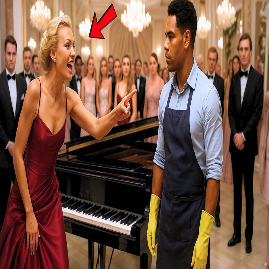 Si tocas ese piano, me caso contigo. La billonaria se rió frente a todos, señalando al empleado de limpieza. Nadie imaginaba que ese hombre guardaba un secreto que callaría hasta el más arrogante y cambiaría su destino para siempre. El salón principal del hotel Continental resplandecía con sus enormes candelabros de cristal.