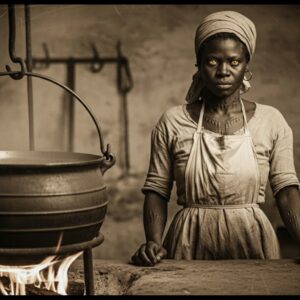 Don Rodrigo era un hombre cruel. Castigaba a los esclavos por placer y trataba a Lucía como si fuera invisible, salvo cuando tenía hambre. Un día, ordenó que le sirviera la cena más grande del mes, pues esperaba a invitados del virreinato. Lucía cocinó sin levantar la mirada, pero cada movimiento de su cuchillo llevaba una promesa. Esa noche, el perfume del guiso llenó la casa. Los hombres rieron, brindaron, comieron con gusto. Solo Lucía permanecía en silencio, observando desde la cocina.