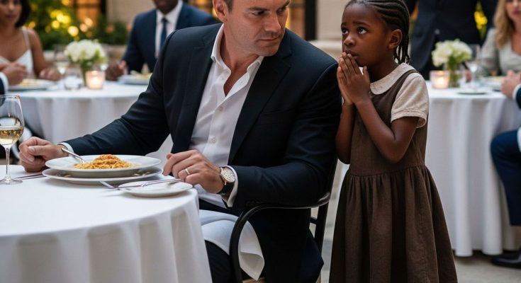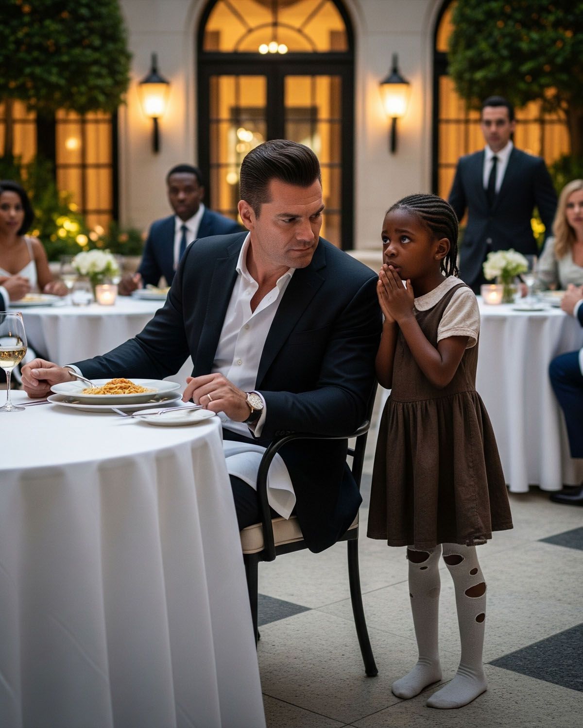 El susurro de la niña apenas era más fuerte que el sonido de los tenedores y cuchillos tintineando en Le Jardin, el restaurante más exclusivo de la ciudad. Richard Hale, el multimillonario director ejecutivo de Hale Industries, se congeló a medio bocado. Miró a la niña que estaba junto a su mesa, una niña no mayor de siete años. Su vestido estaba descolorido y remendado, sus zapatos gastados y sus ojos muy abiertos con una mezcla de miedo y hambre.