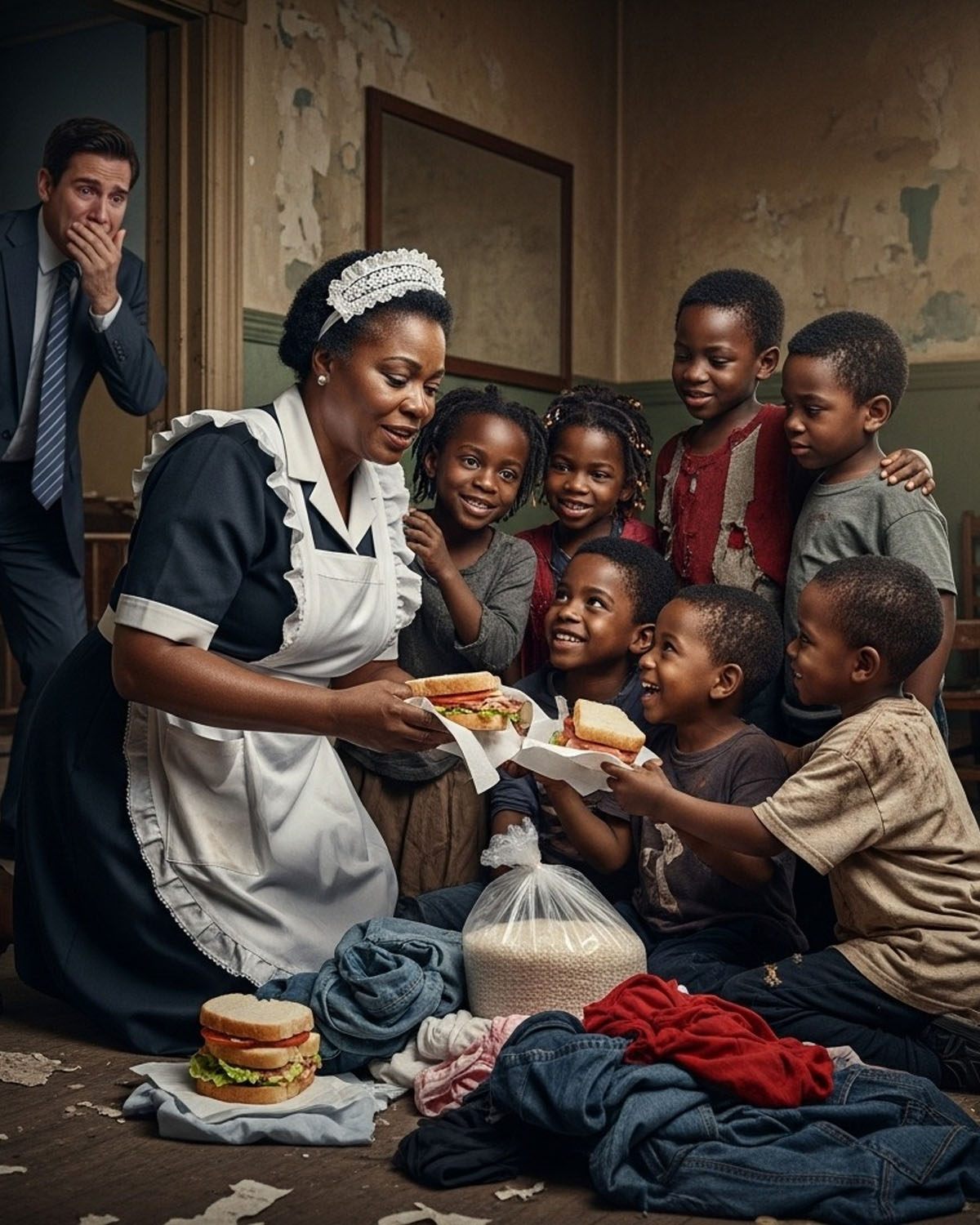 Margaret se detuvo no en una casa, sino en un edificio de ladrillos en ruinas con un letrero desvaído: Centro Comunitario Esperanza. Adentro, docenas de niños corrieron hacia ella, sus rostros iluminándose mientras gritaban: “¡Mamá Margaret!” Ella repartió sándwiches envueltos en servilletas, bolsas de arroz, ropa de segunda mano y cuadernos. Se arrodilló para atar los cordones de los zapatos de un niño, besó la frente de un bebé y abrazó a un adolescente tembloroso.