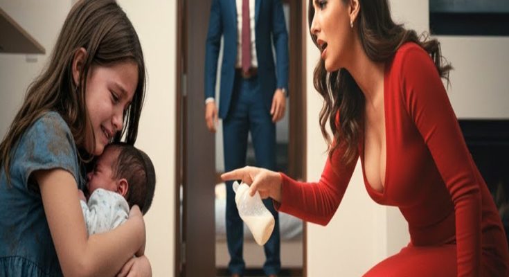 Las manitas del pequeño se aferraban a ella como si fuera el único refugio. Entonces una voz resonó cortando el aire. Silencio. Si no me obedecen, los voy a echar a la calle. Era Camila, la madrastra. Llevaba un vestido rojo y un maquillaje impecable, pero su corazón era frío como el hielo. Miró el biberón y lo soltó. La leche se derramó sobre el mármol.
