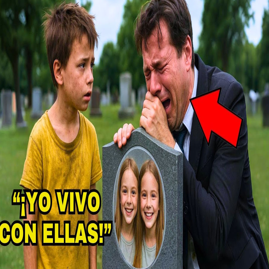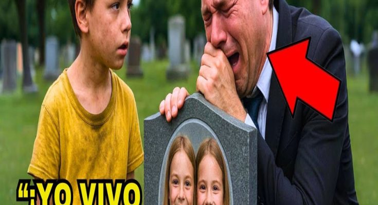 creyó estar llorando sobre la tumba de sus hijas, pero un niño pobre le reveló algo que lo dejó sin aliento. La mañana estaba cubierta por una neblina suave, de esas que se aferran al suelo como un velo gris, apagando colores y sonidos. El millonario Adrián Monteverde avanzaba entre lápidas silenciosas con un ramo de flores blancas en la mano.