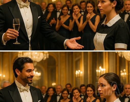 Lucía era apenas uma funcionária do hotel. Vestia o uniforme preto com um avental branco engomado, cabelos presos em um coque simples, expressão serena e mãos firmes segurando uma bandeja de taças.