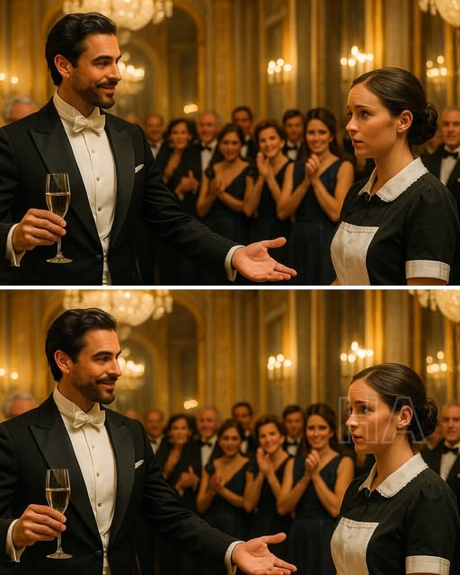 A orquestra tocava um tango clássico — “Por Una Cabeza” — quando, de repente, o herdeiro ergueu a taça de champanhe, caminhou até o centro do salão e disse em voz alta:
