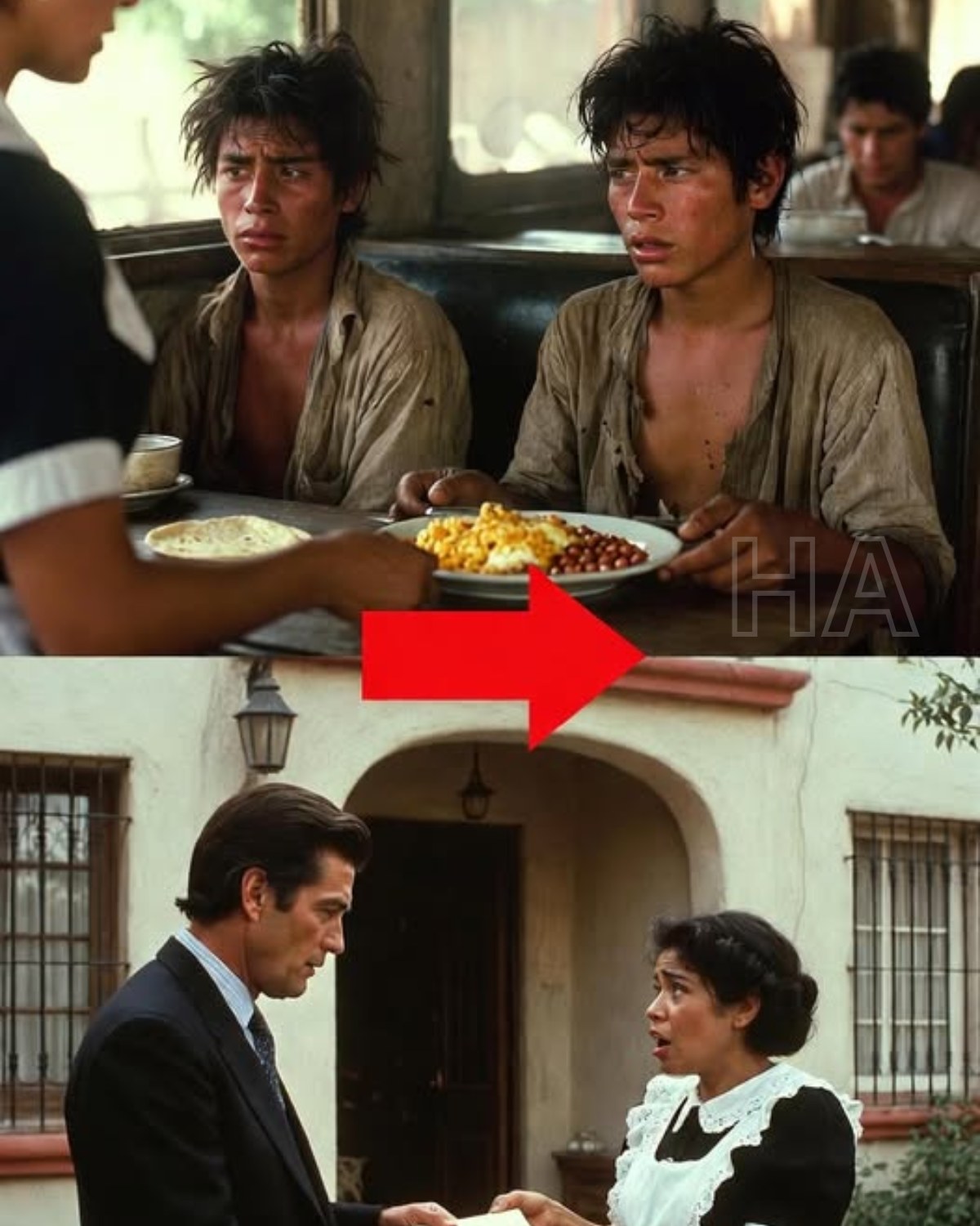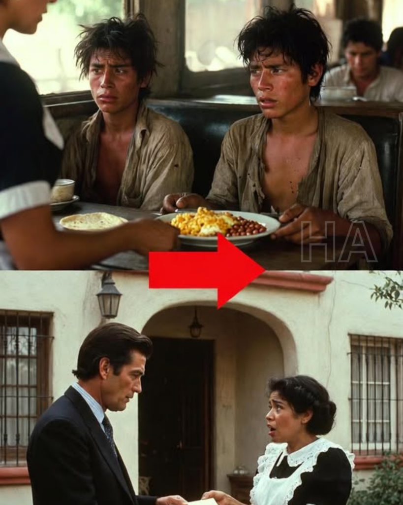 Sus caritas están presionadas contra el vidrio, observando con ojos enormes como las familias adentro comen platos humeantes. Algunos clientes los notan y desvían la mirada incómodos. Una señora comenta, “Qué tristeza ver niños en esa condición. María los ve desde la cocina. Algo en sus ojitos la conmueve profundamente.