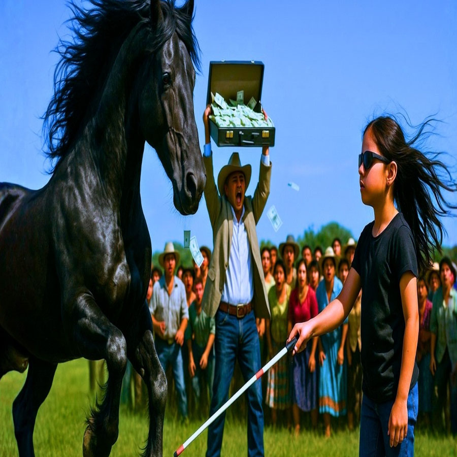 Yo ofresto 10 m000ones a quien logre domar este caballo salvaje. Una niña ciega de 10 años aceptó el reto. El animal era pura violencia. 30 días para lo imposible. Lo que sucedió después nadie lo esperaba. 10 millones. 10 millones de pesos para quien dome a ese maldito animal. La voz de don Manuel Córdoba retumbaba en la plaza del pueblo como un trueno.