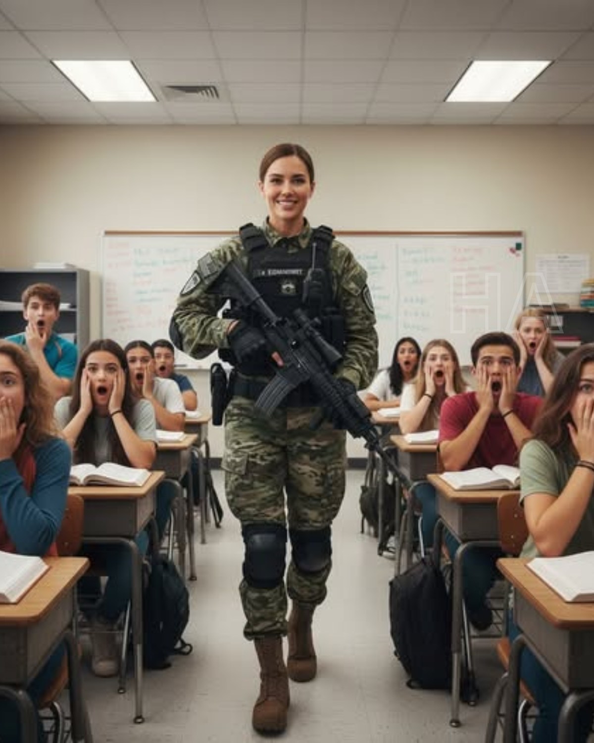 La líder del escuadrón, una mujer alta y formidable, apuntó brevemente con su fusil por el aula, escaneando el espacio con precisión militar. El silencio era tan denso que podíamos oír nuestros propios latidos. Todos temblaban. Menos yo. Yo sentía una calma extraña. Una familiaridad escalofriante.