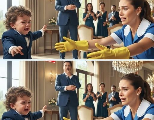 El cristal de las copas aún vibraba cuando el silencio cayó sobre el salón. Cincuenta invitados de la alta sociedad miraban la misma escena sin entender nada: el hijo del millonario, el pequeño Matías de dos años, corría por el piso de mármol, con las mejillas rojas de tanto llorar, directo hacia… la empleada de limpieza.