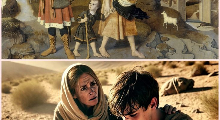 Así, Agar e Ismael fueron enviados al desierto con provisiones limitadas. La imagen de Abraham despidiéndose de su hijo es conmovedora y trágica, simbolizando el amor de un padre que debe tomar decisiones difíciles en medio de circunstancias complicadas.