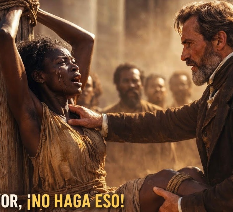 La multitud obligada a presenciar el castigo —personas esclavizadas y capataces blancos— aguardaba la llegada del nuevo barón, Henrik Whitmore, heredero reciente de la propiedad tras la muerte de su esposa.