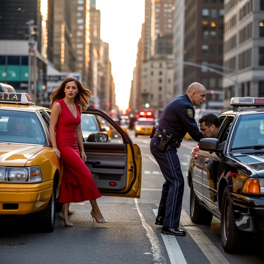 Cuando el sargento cruzó la línea, sujetando al conductor con violencia, Sarah entendió que ya no podía permanecer como espectadora. No porque su posición se lo exigiera, sino porque su conciencia no le permitía otra opción. Abrió la puerta del taxi con calma, descendió y se colocó frente a la escena con una presencia que no necesitaba presentación.