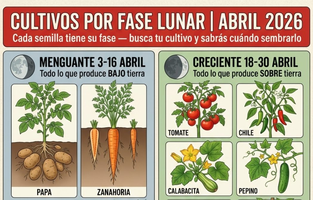 CULTIVOS POR FASE LUNAR — GUÍA RÁPIDA DE ABRIL